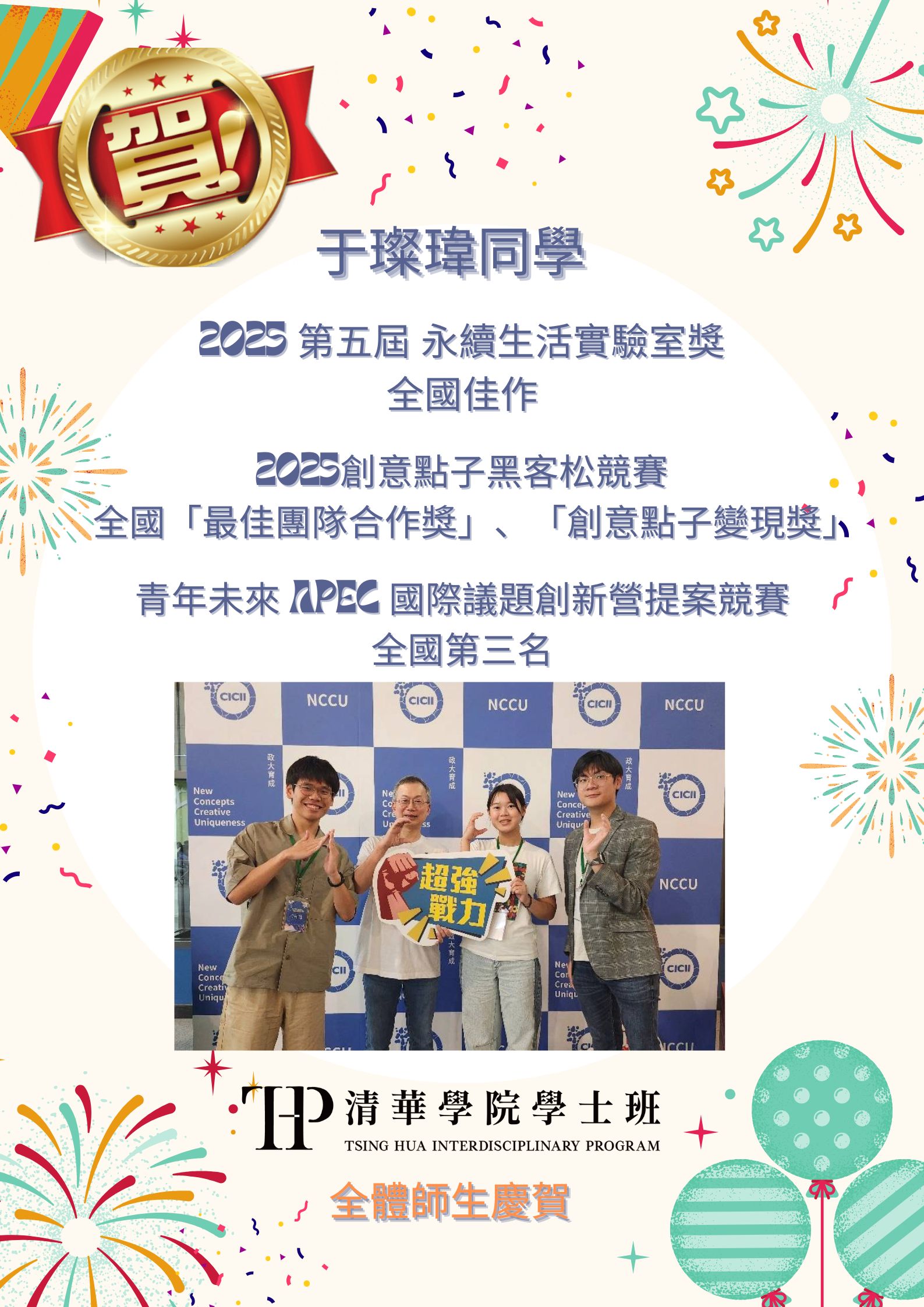 恭賀!適性探索方案于璨瑋同學榮獲三項全國獎項