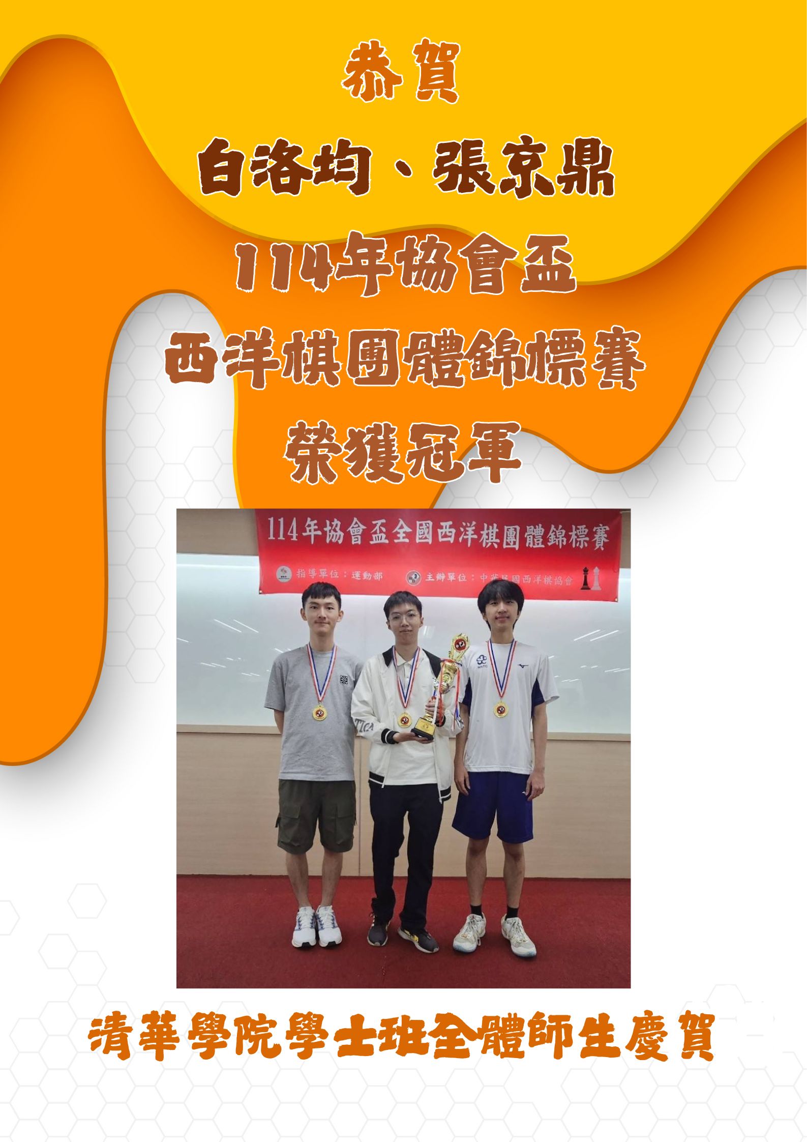 恭賀!白洛均、張京鼎同學榮獲114年協會盃西洋棋團體錦標賽冠軍