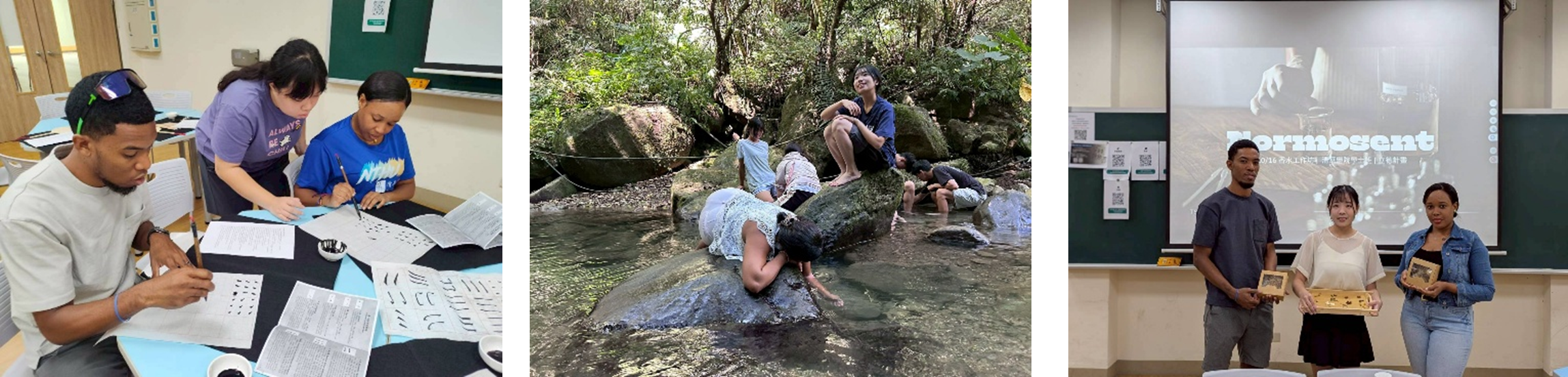 學生宸豪、可婕以「在地文化創生」為題,帶領友邦青年探訪新竹舊城區與馬胎古道,認識城市脈絡與地方故事;子妤、明俊以傳統文化為交流媒介,設計書法與篆刻體驗,讓外籍青年親手感受中文字的形與意,並以布袋戲分享台灣戲曲的美學;泰然以影像紀錄與空拍手法捕捉整段旅程,製作成紀錄片,呈現文化外交的真實樣貌;沛芠則以永續創新為主題,分享「醜水果香水」設計,重新定義不完美果實的價值。