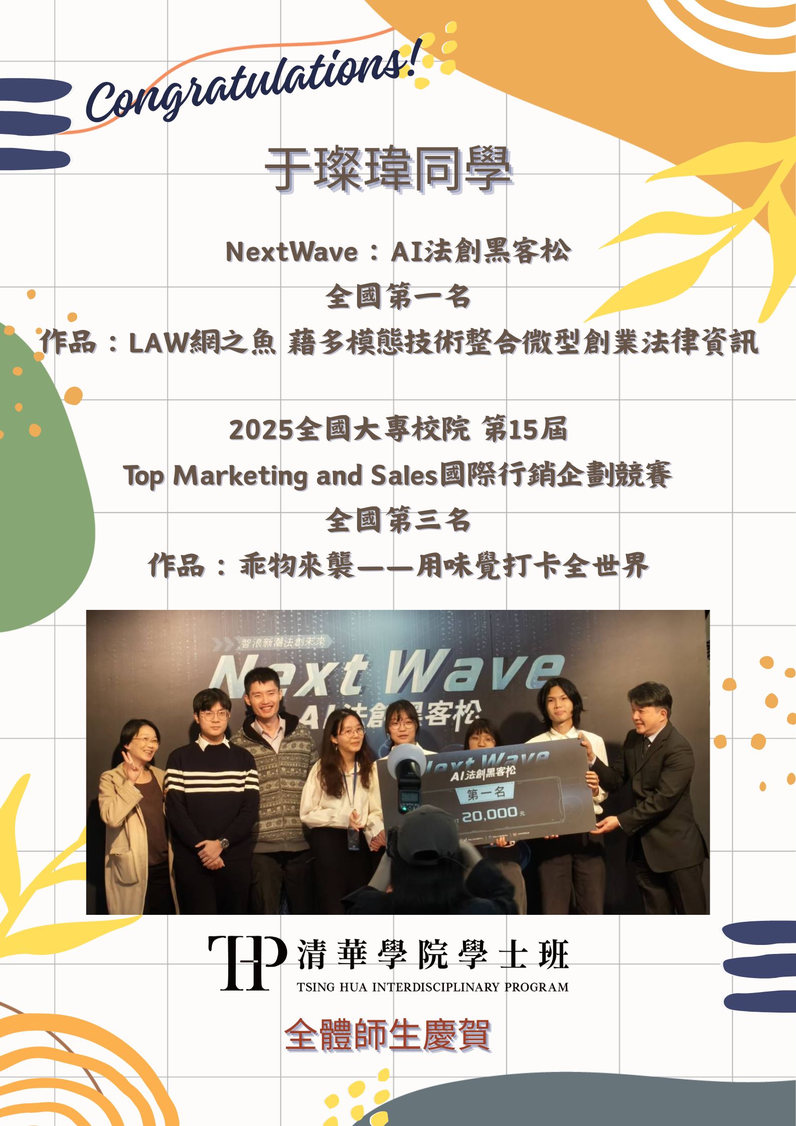 恭賀!適性探索方案于璨瑋同學榮獲全國第一名及第三名獎項