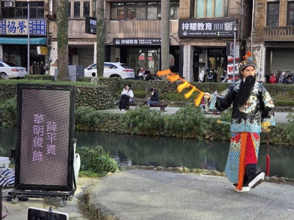 當天下午,清華學院學士班實驗教育方案學生華明俊,參與京劇社與新竹國劇演藝團的戶外公演,直接在護城河畔粉墨登場,飾演經典角色「薛平貴」。在護城河畔的現場演出,讓傳統戲曲多了一種很不一樣的距離感。
