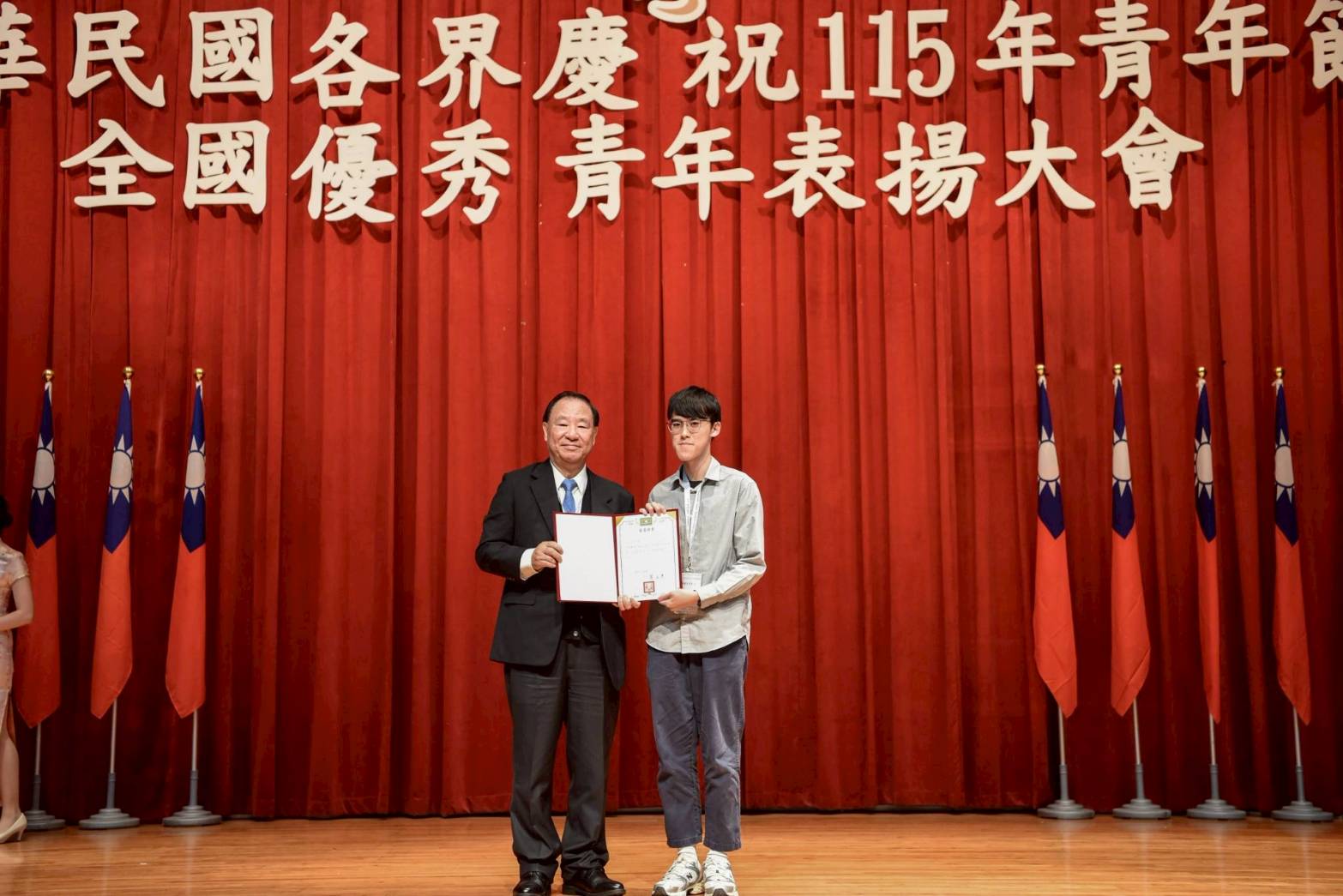 實驗教育方案許宸豪同學獲選為「全國受獎代表」,於中華民國各界慶祝青年節之菁英大會中接受公開表揚;適性探索方案張宇丞同學則獲選為「學校受獎代表」,其優異表現亦深獲肯定。